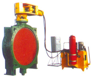 該蝶閥開啟、關閉均靠液壓驅動,可在 90 °范圍內調節蝶板快、慢兩階段關閉角度,可立臥兩式安裝。